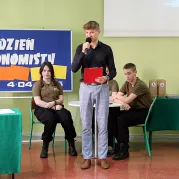 W programie wydarzenia znalazły się: Awantura Ekonomiczna, która wywołała wiele emocji; w Debacie rozstrzygano, co lepsze – gotówka czy pieniądz elektroniczny, stawiając pytanie o przyszłość finansów w dobie cyfryzacji. Na zakończenie, Absolwenci z kierunków technik ekonomista/technik handlowiec ,podzielili się swoimi doświadczeniami i udzielili cennych rad, które z pewnością będą inspiracją dla naszych uczniów. Mistrzami Ekonomii w ZSCKU została drużyna Zielonych (Patrycja Bocian, Eryk Pakulski, Filip Wiśniewski i Malwina Budzińska), którym wręczono puchar i dyplomy. Wydarzenie poprowadził uczeń klasy 4HE – Jan Świątek, który wcielił się w rolę Krzysztofa Ibisza – świetny występ! Dziękujemy wszystkim za aktywny udział i za stworzenie wyjątkowej atmosfery!