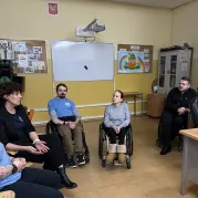 03.12.2025r. - odbyło się spotkanie w ramach innowacji „Niepełnosprawność (nie) mój problem”. Wydarzenie przewidziano dla klas 4L oraz 3P. Spotkanie przeprowadzone w towarzystwie pracowników i podopiecznych fundacji Podaj Dalej, miało na celu przybliżenie młodzieży idei mieszkań treningowych oraz uświadomienie potrzeby aktywizacji osób z niepełnosprawnościami w szkole, pracy, ale przede wszystkim w codziennym życiu.