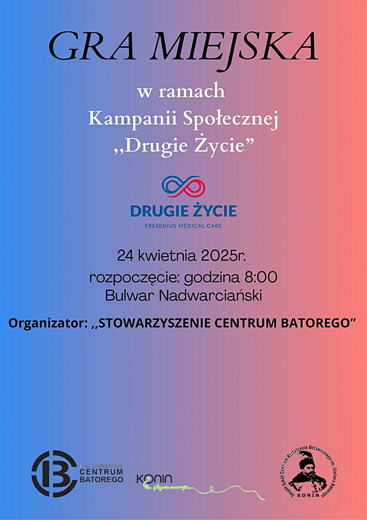Już za 10 dni ruszamy na konińską Starówkę. Młodzież szkół podstawowych i ponadpodstawowych będzie rozwiązywać zadania w punktach konińskiej Starówki podczas GRY MIEJSKIEJ w ramach kampanii społecznej DRUGIE ŻYCIE.
