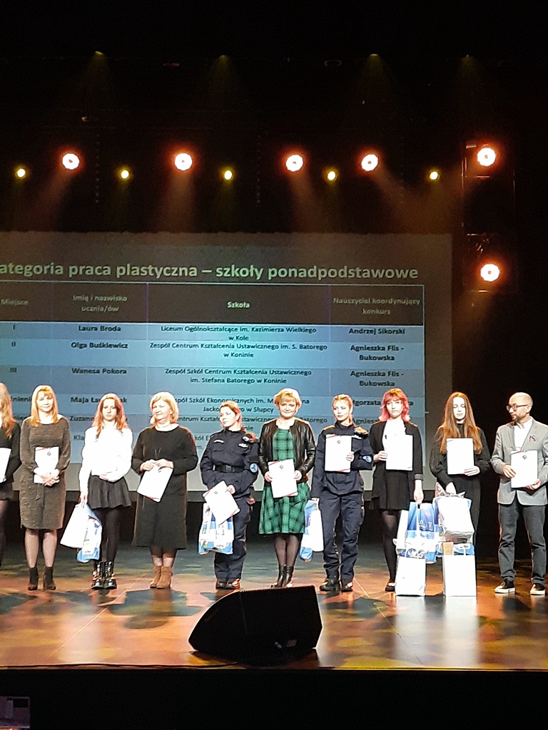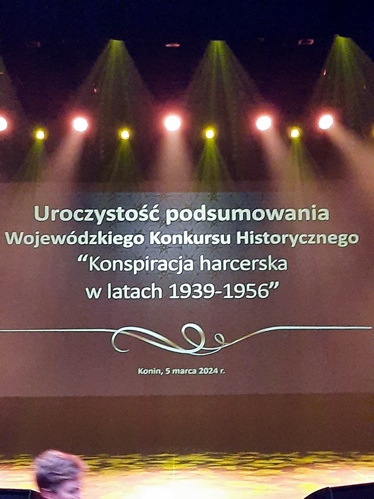 5 marca 2024 r. w CKiS „OSKARD” odbyła się uroczysta gala wręczenia nagród w Wojewódzkim Konkursie Historycznym „Konspiracja harcerska w latach 1939 – 1956”. Patronat honorowy nad nim objął Wielkopolski Kurator Oświaty. Konkurs ma na celu upamiętnianie, obchodzonego od 2011r., Narodowego Dnia Pamięci Żołnierzy Wyklętych. Tegoroczna edycja poświęcona była pamięci harcerzom i harcerkom, którzy swój obywatelski sprawdzian zdali w czasie II wojny światowej, walcząc w obronie kraju. Ze względu na zróżnicowanie kategorii konkursowych, turniej dawał możliwość zaprezentowania różnorodnych zdolności oraz zachęcał do samodzielnej i twórczej pracy przy wykorzystaniu różnych źródeł informacji. Nasi uczniowie wykonali prace plastyczne, lapbooki i kartki z kalendarza. Siedmioro z nich, przy ogromnej konkurencji (wpłynęło 137 prac!), zakończyło konkurs wielkim sukcesem, a byli to: