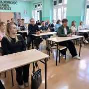 Słuchacze zostali powitani przez dyrektora szkoły - p.Ewę Dąbrowską, wicedyrektora - p. Agnieszkę Flis-Bukowską oraz opiekunów klas.