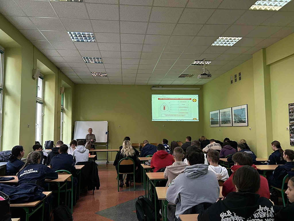 12 listopada, dzień przed szkolną Akcją Honorowego Krwiodawstwa, młodzież naszej szkoły uczestniczyła w spotkaniu edukacyjnym z Panią Anną Janicką, pracownikiem działu promocji Regionalnego Centrum Krwiodawstwa i Krwiolecznictwa w Kaliszu. Tematem prelekcji było: „Jak zostać honorowym dawcą krwi”. Podczas spotkania uczniowie zostali wyposażeni w rzetelną i praktyczną wiedzę na temat krwiodawstwa. Dowiedzieli się m.in.: • kto może zostać dawcą krwi i jakie warunki trzeba spełnić, • jak wygląda proces rejestracji oraz badania kwalifikacyjne, • jak przebiega samo oddawanie krwi i ile czasu trwa, • jak należy przygotować się do donacji – zarówno dzień wcześniej, jak i tuż przed oddaniem krwi, • jakie są przeciwwskazania zdrowotne i czasowe, • jakie korzyści zdrowotne i społeczne niesie ze sobą regularne oddawanie krwi, • w jaki sposób krew jest wykorzystywana i jak realnie ratuje życie pacjentów. Prelegentka przedstawiła także zasady funkcjonowania honorowego krwiodawstwa w Polsce oraz zachęciła młodzież do odpowiedzialnego i świadomego angażowania się w akcje pomocowe. Zdobyta w czasie prelekcji wiedza z pewnością rozwiała wiele wątpliwości i zmotywowała część uczniów do pierwszej donacji.