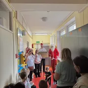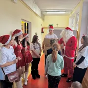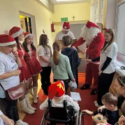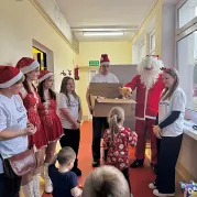 Mikołaj rozdał Misiaki Uszczęśliwiaki, a Mażoretki ,,Charme" Orkiestry Dętej Quantum w Rychwale wykonały krótki pokaz taneczny w rytm świątecznej piosenki.