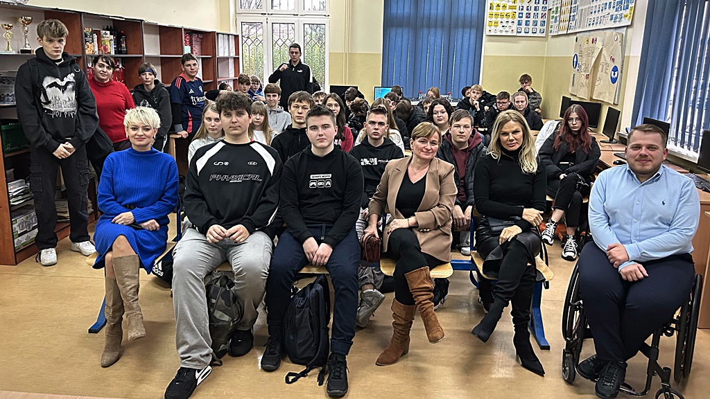 W dniu 03.12.2024 odbyło się kolejne spotkanie w ramach innowacji „Niepełnosprawność (nie) mój problem”. Konrad Pawłowski – nauczyciel ZS CKU w Koninie, przedstawił uczniom, jak „od kuchni” wygląda życie osób z niepełnosprawnościami. Tym razem w spotkaniu brały udział klasy: 1LE, 2L oraz 4HE. Wykład pomógł uczniom lepiej zrozumieć, że niepełnosprawność jest wśród nas i że każdy może w prosty sposób okazać wsparcie osobom niepełnosprawnym.