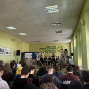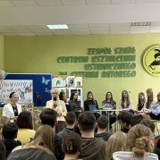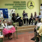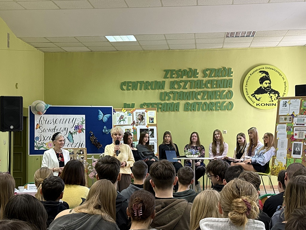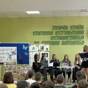 19 marca 2025 r. odbyło się w naszej szkole spotkanie klas: 3 HE, 3 ST , 1 IS, 2 BS z poetką - Danutą Olczak. Podczas inspirujących odwiedzin mogliśmy wysłuchać recytacji tekstów artystki w wykonaniu uczennic z kl. 3 ST oraz 1 IS. Poetka ziemi konińskiej wyjawiła swoją receptę na sukces, porównując życie człowieka do zmagań motyla. Jednocześnie dowiedzieliśmy się nieco o osobistych doświadczeniach p. Danuty Olczak, która mówiła, że przeciwności losu nie przeszkodziły jej nigdy w realizacji pasji. Cenny przekaz Poetki napełnił wszystkich uczestników dobrą energią, a optymistyczna twórczość wprawiła w wiosenny nastrój.