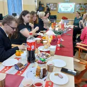 15 grudnia 2024 r. odbyło się spotkanie wigilijne Samorządu Słuchaczy. Brali w nim udział: dyrektor szkoły - p.Ewa Dąbrowska, wicedyrektor - p.Agnieszka Flis-Bukowska, nauczyciele oraz słuchacze form zaocznych. Wszyscy zebrani zasiedli przy świątecznie udekorowanym stole wigilijnym. Potrawy i wystrój oddawały klimat i tradycję zbliżających się świąt. Wszyscy zebrani życzyli sobie pięknych świąt Bożego Narodzenia.