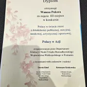 Podczas XXIX Targów Edukacyjnych w Poznaniu 7 marca 2025 r. odbyła się uroczystość wręczenia nagród w wojewódzkim konkursie „Polacy w świecie znani z działalności publicznej, misyjnej, naukowej, artystycznej i sportowej". Zawody organizuje Departament Edukacji i Nauki Urzędu Marszałkowskiego Województwa Wielkopolskiego. Celem Konkursu jest wzbudzenie zainteresowania wśród uczniów historią sławnych Polaków w świecie oraz historią, geografią i kulturą terytorium, określonego w temacie na dany rok. Tegoroczna edycja konkursu odbyła się pod hasłem działalności Polaków w Azji, a wykonać należało plakat