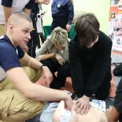Wspólnie promowaliśmy wiedzę o pierwszej pomocy i RKO. Podczas warsztatów i pokazów pierwszej pomocy uczniowie z konińskich szkół podstawowych: SP1, SP4, SP6, SP12 oraz ze Szkoły Podstawowej z Brzeźna uczyli się jak szybko reagować w sytuacjach zagrożenia życia. W ćwiczeniach z RKO uczestniczyli również Pan Witold Nowak Zastępca Prezydenta Miasta Konina, pani Ewa Kulczyńska Kierownik Wydziału Spraw Społecznych, pan Paweł Figurski Kierownik Wydziału Bezpieczeństwa i Zarządzania Kryzysowego Urzędu Miejskiego w Koninie, pan Dawid Grzemski Komendant Straży Miejskiej w Koninie, przedstawiciele Komendy Miejskiej Policji w Koninie oraz Komendy Miejskiej PSP w Koninie oraz pan Bartosz Dunaj Ratownik Medyczny z Wielkopolskiego Centrum Ratownictwa Medycznego.