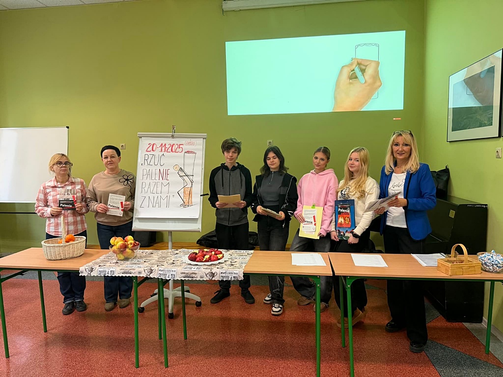 Światowy Dzień Rzucania Palenia Kolejny raz społeczność naszej szkoły dołączyła do ogólnopolskiej inicjatywy „Rzuć Palenie Razem z Nami”. To doskonała okazja, aby uświadomić młodzieży ,że palenie tytoniu stanowi zagrożenie nie tylko dla zdrowia palacza, lecz także dla jego najbliższych. Przedstawiciele klas wraz z nauczycielami wzięli udział w prelekcji na temat szkodliwości palenia papierosów i e-papierosów. Młodzież miała również okazję rozwiązać quiz wiedzy na temat: "Dlaczego warto rzucić palenie". W duchu promowania zdrowego stylu życia uczniowie mogli poczęstować się świeżymi owocami. Bardzo dziękujemy wszystkim za aktywny udział w spotkaniu.