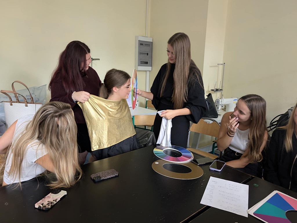 15 września uczniowie klasy 4ST uczestniczyli w szkoleniu „Analiza kolorystyczna w praktyce”. Pod okiem stylistki wizerunku -Małgorzaty Sikorskiej z firmy DRESS NO STRESS, zdobywali cenne umiejętności doboru kolorów do typu urody .Wiedza z pewnością okaże się przydatna w przyszłej pracy zawodowej.