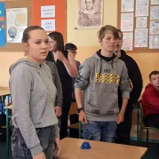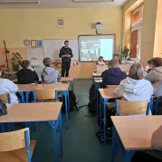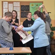 Warsztaty logistyczne w Szkole Podstawowej nr 6 im. Romualda Traugutta w Koninie oraz w Szkole Podstawowej im. Juliusza Słowackiego w Golinie O tym, jak ciekawym zawodem jest technik logistyk mogli się przekonać ósmoklasiści ze Szkoły Podstawowej nr 6 w Koninie i Szkoły Podstawowej w Golinie. W dniach: 23.05.25r. i 26.05.25r. „żywą lekcję” logistyki przeprowadzili uczniowie kl. IV L i II L. Doskonale wcielili się w rolę belfrów, aby w ramach tematu „Specjalista od logistyki” zobrazować procesy logistyczne. Przybliżyli młodszym kolegom, czym zajmuje się logistyka, kim jest technik logistyk. Zasadniczą i najbardziej angażującą młodszych kolegów częścią lekcji była „Familiada logistyczna”. Dziękujemy zarówno uczestnikom jak i widowni za wspaniałą atmosferę w czasie gry. Mamy nadzieję, że uczniom klas podstawowych nie będzie już obca logistyka!!! Dyrekcji szkół dziękujemy za możliwość odbycia warsztatów.