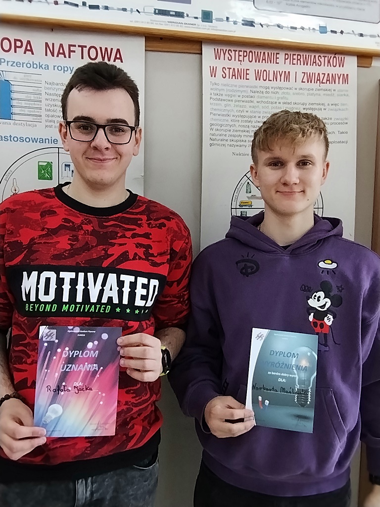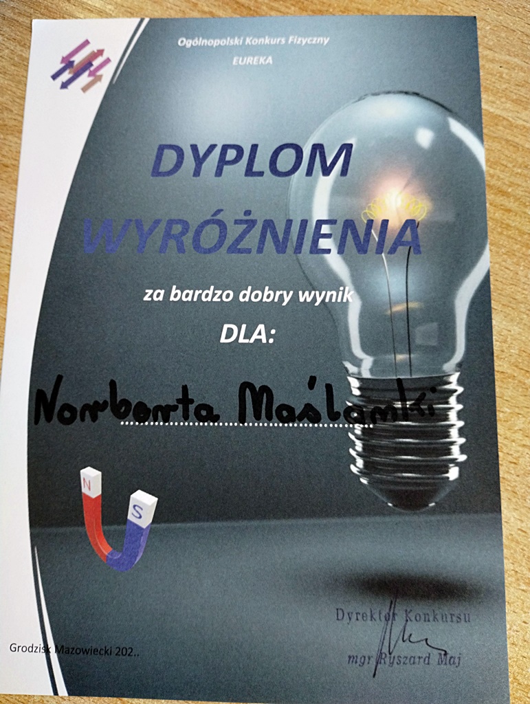 Trzymanie kciuków pomogło! Uczeń klasy III L, Norbert Maślanka, zdobył wyróżnienie za bardzo dobry wynik uzyskany w konkursie. Serdecznie gratulujemy i życzymy kolejnych jeszcze większych sukcesów w kolejnych latach. Pozostali uczestnicy otrzymali dyplomy uznania za udział w EURECE.
