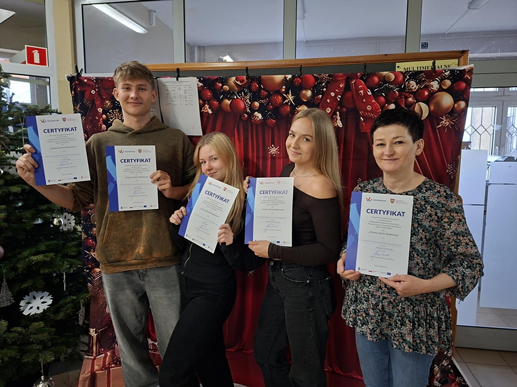 W dniach 3–4 grudnia uczniowie naszej szkoły wzięli udział w dwudniowym wyjeździe edukacyjnym w ramach Zielonej Szkoły Wodorowej. Pierwszego dnia odwiedzili Instytut Technologiczno-Przyrodniczy – PIB w Poznaniu, gdzie uczestniczyli w zajęciach teoretycznych oraz zwiedzali akredytowane laboratorium biotechnologiczne. Uczestniczyli także w zajęciach na Politechnice Poznańskiej w Instytucie Napędów i Lotnictwa, prowadzonych przez prof. dr hab. inż. Ireneusza Pielechę. Drugiego dnia realizowano zajęcia terenowe związane z odnawialnymi źródłami energii, obejmujące m.in. elektrownie wiatrowe, instalacje fotowoltaiczne, magazyny energii oraz technologie oparte na zielonym wodorze. Uczniowie zwiedzili również zakład PROMET-PLAST, będący przykładem autokonsumpcji energii z OZE. Wyjazd odbył się dzięki wsparciu Urzędu Marszałkowskiego w Poznaniu. Nasza szkoła uczestniczy w projekcie Szkoły Wodorowej od pierwszej edycji, a jego koordynatorem jest pani Bogumiła Kwaśniewska. Wyjazd był wartościowym doświadczeniem, łączącym teorię z praktycznym poznaniem nowoczesnych technologii energetycznych.